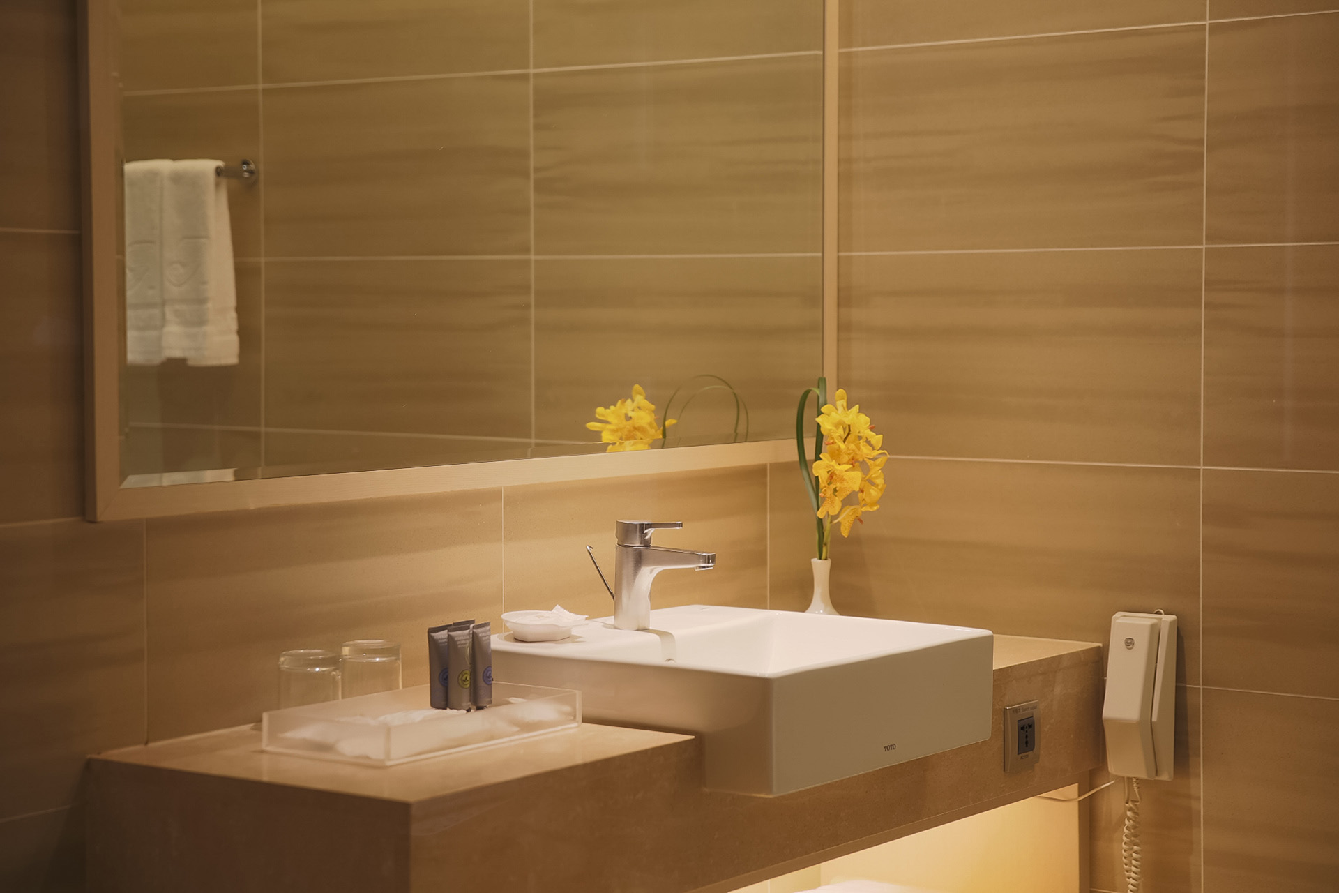 寬敞的空間與柔和的燈光,打造舒適愜意的休憩氛圍。 部分客房提供乾濕分離淋浴間。